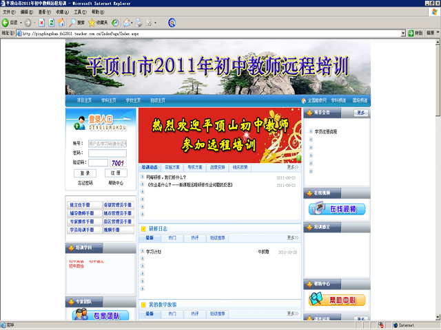2011年10月21日上午,我校信息中心对参加远程培训的教师进行了关于“平顶山市2011年初中教师远程培训”的培训。学习了网络培训平台的注册过程、熟悉了学习平台以及学习过程中的注意事项。